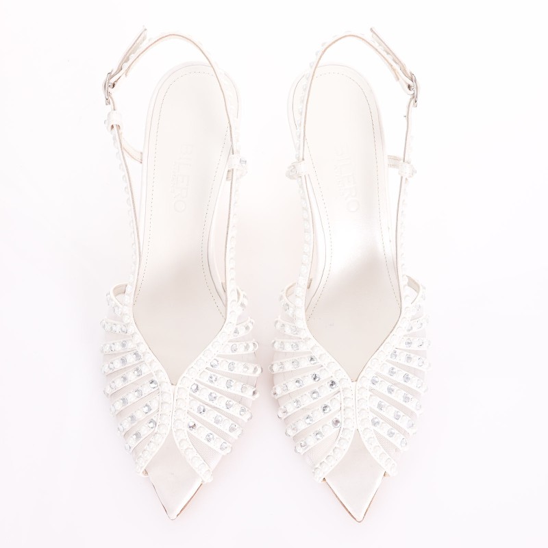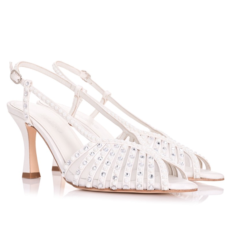 Looking for the perfect bridal heel for your special day? These handcrafted white satin sandals, embellished with shimmering crystals and delicate pearls, are the epitome of elegance. With a comfortable 7.5 cm heel, they offer graceful height without sacrificing stability. The Memory Gel insole absorbs impact, keeping you comfortable from ceremony to celebration. Crafted with a genuine nubuck leather sole, they provide premium grip and luxury underfoot. 100% handmade in our atelier, for brides who want more than just another shoe—they want a story.