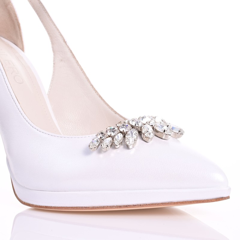 The ultimate bridal heels for a dazzling and elegant look! Crafted from luxurious white pearl leather, these handmade heels exude sophistication and refinement. The 9.5cm heel, paired with a 1cm platform, ensures comfort and stability, while the stunning rhinestone clip at the front adds a touch of timeless glamour. Perfect for brides who want to shine with every step, blending style, comfort, and luxury effortlessly.
