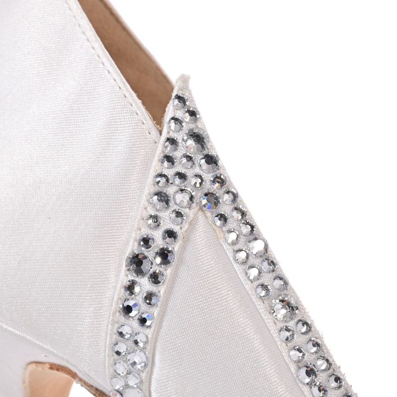 The handmade bridal pumps in white silk satin with crystals are the perfect choice for an unforgettable and glamorous bridal look!