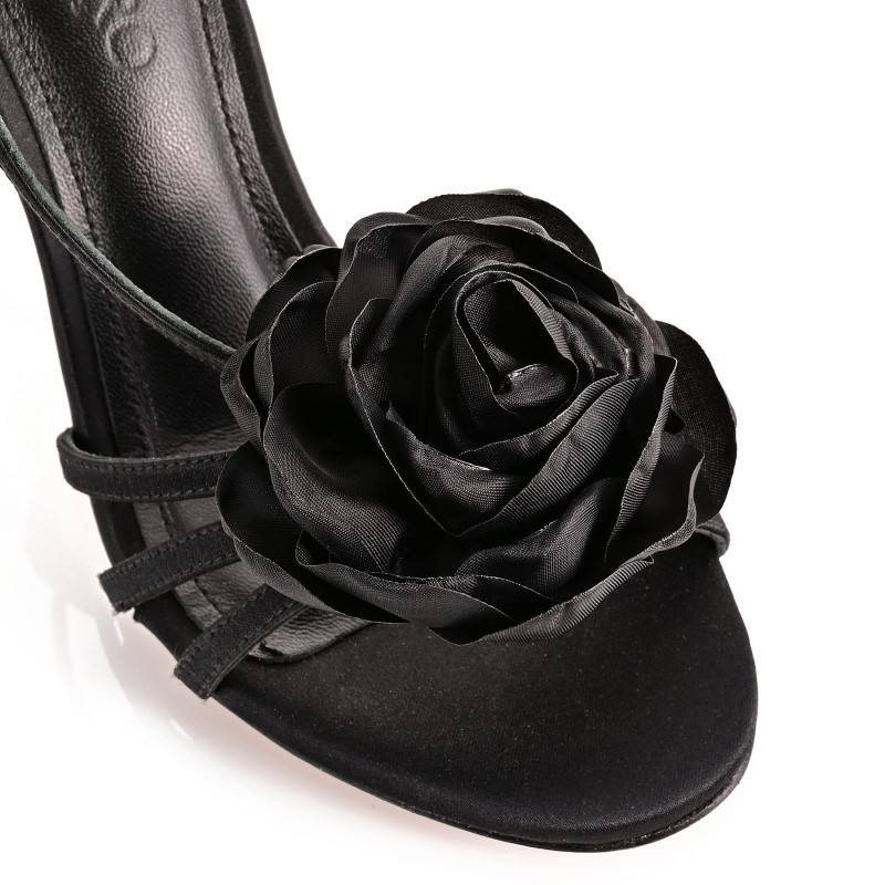 The black satin sandals with floral embellishment are the ultimate choice for women who want to make a statement with style and grace!