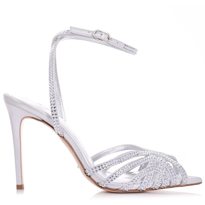 Η απόλυτη λάμψη για τη νύφη που θέλει να ξεχωρίσει! Αυτά τα μυτερά χειροποίητα νυφικά πέδιλα από ιριδίζον ασήμι δέρμα αγκαλιάζουν το πόδι με απαράμιλλη κομψότητα, ενώ το λεπτό τακούνι 9,5cm χαρίζει ύψος και στυλ. Τα περίτεχνα λουράκια, στολισμένα με λαμπερά στρας, προσθέτουν μια εκλεπτυσμένη πινελιά πολυτέλειας, ολοκληρώνοντας ένα bridal look που συνδυάζει μοντέρνα αισθητική και διαχρονική φινέτσα. Ιδανικά για τις πιο εντυπωσιακές νυφικές εμφανίσεις.